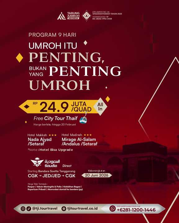 Tabung Jumroh Indonesia berusaha memberikan rangkaian ibadah dan wisata dengan harga paket terbaik yang InsyaaAllah sesuai dengan kualitas dan fasilitas.
